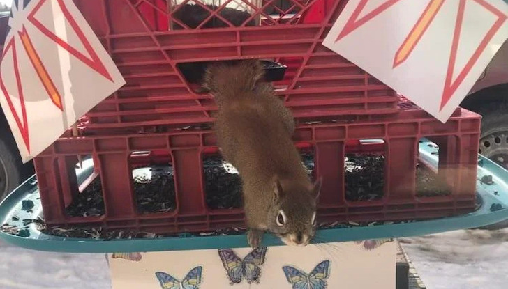 Блин, с этими кормушками и белками. В интернете есть видео, как один чувак уже отчаялся и изобрел катапульту для белок, которые все время посягали на кормушку . Она не наносит им вреда, просто отбрасывает в сторону деревьев, но как же это смешно. И смех, и грех просто.