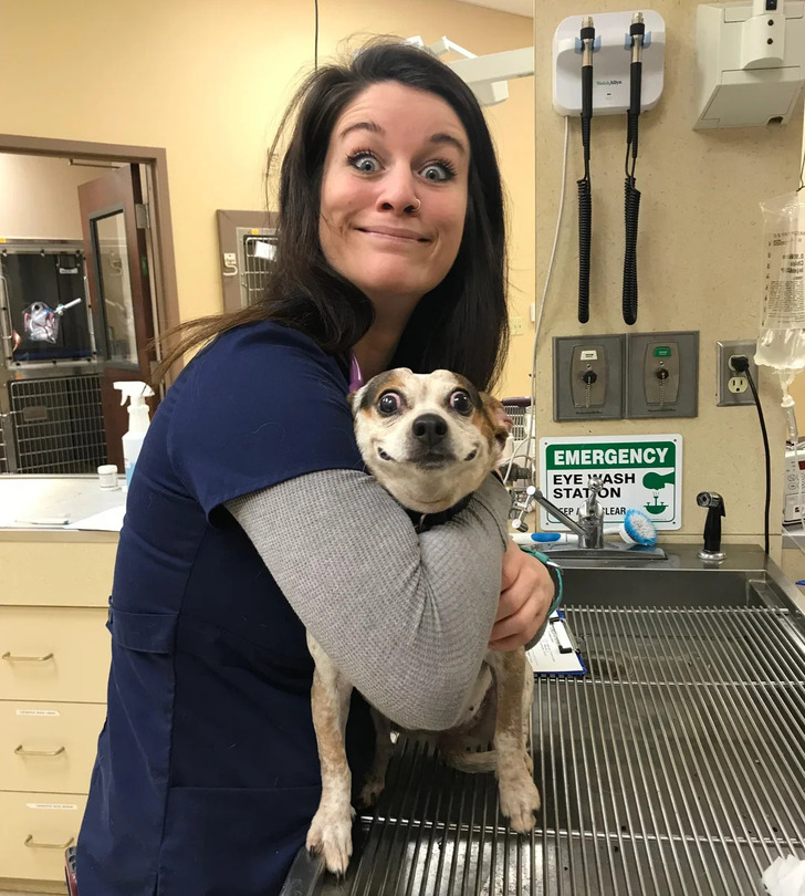 «Шокированный щенок с моей не менее шокированной коллегой»
