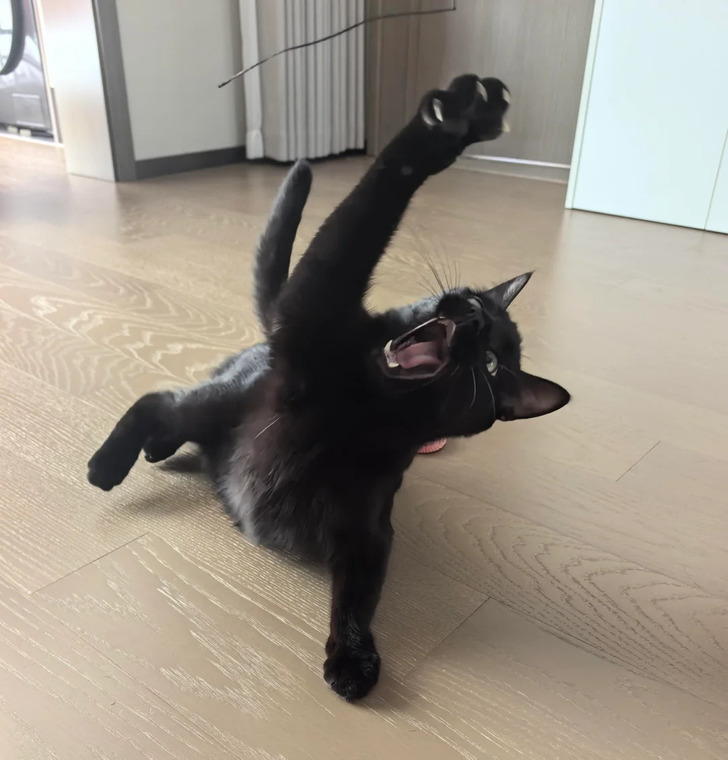«После долгого дня в офисе готовила ужин и вдруг поняла, что в доме слишком тихо. Сердце екнуло. Обернулась и увидела своего кота вот в такой позе»