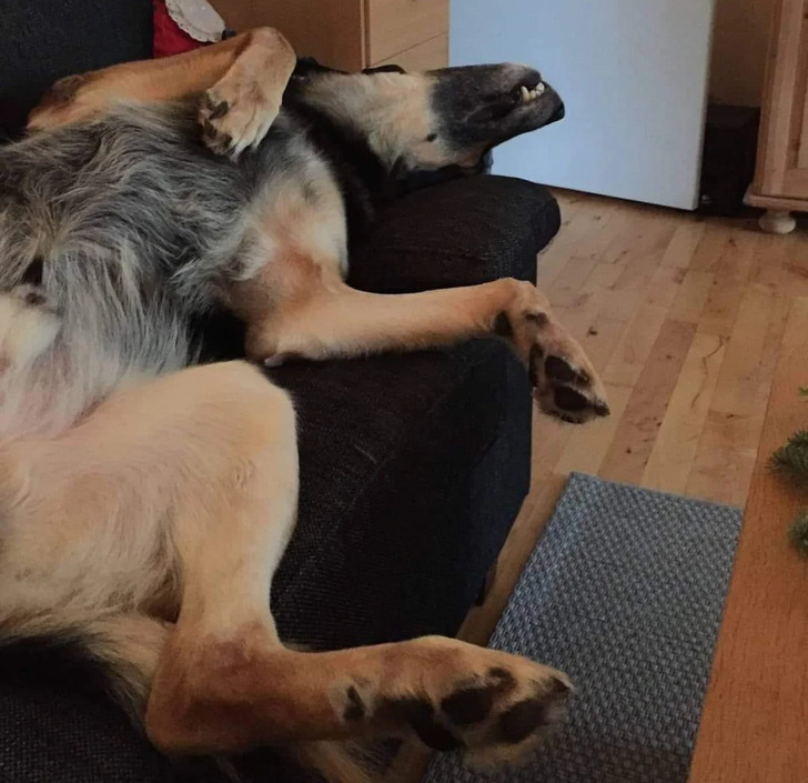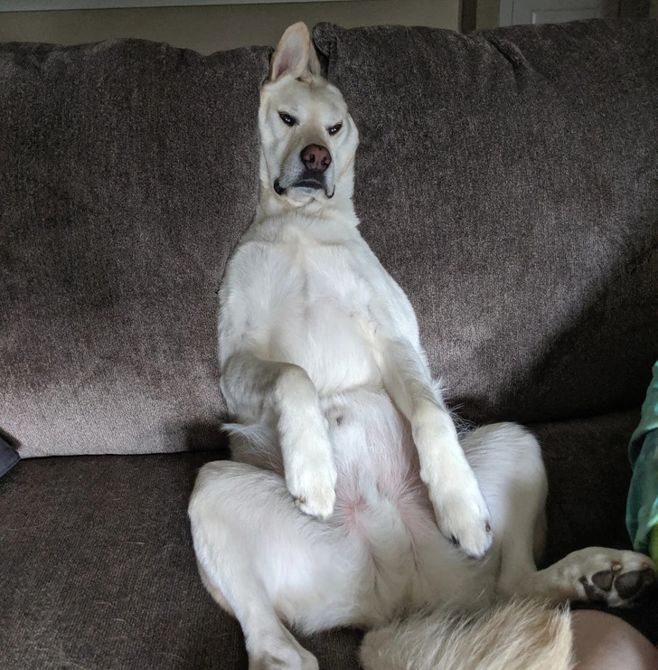 «Наша собака боится грозы. Мы дали ей успокоительное. Вот как она сидела»