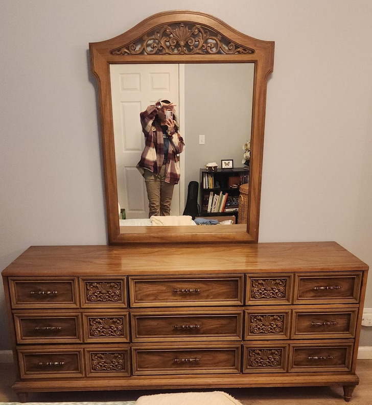 «Забрала этот комод всего за $1! Я караулила его несколько недель. Пришлось прийти ни свет ни заря и отстоять очередь, но оно того стоило. Состояние идеальное»