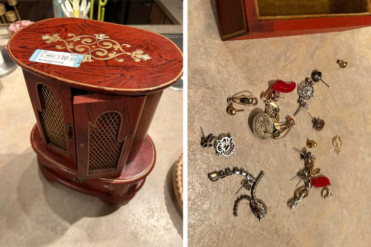 «Купила шкатулку за $ 5. Я всегда проверяю их в магазинах: часто внутрь что-то закатывается и застревает за ящиками. И не зря!»