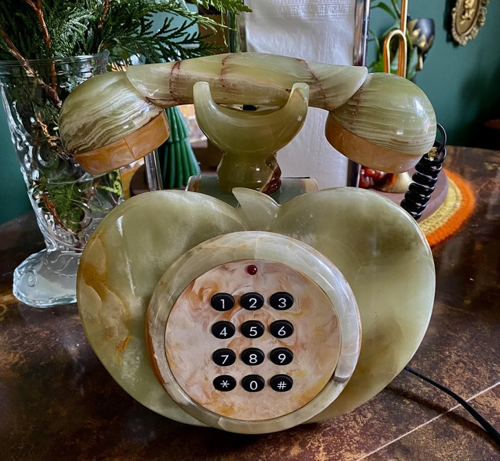 «Не смогла уйти из секонда без этого телефона из алебастра. Пользоваться им я, конечно, не буду — взяла чисто ради вайба»