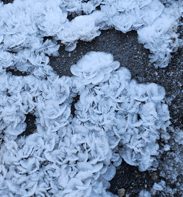 «Замерзший снег на парковке похож на цветы»