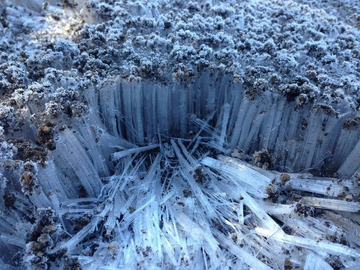 «За ночь земля промерзла, и теперь это выглядит как крошечный ледяной лес»
