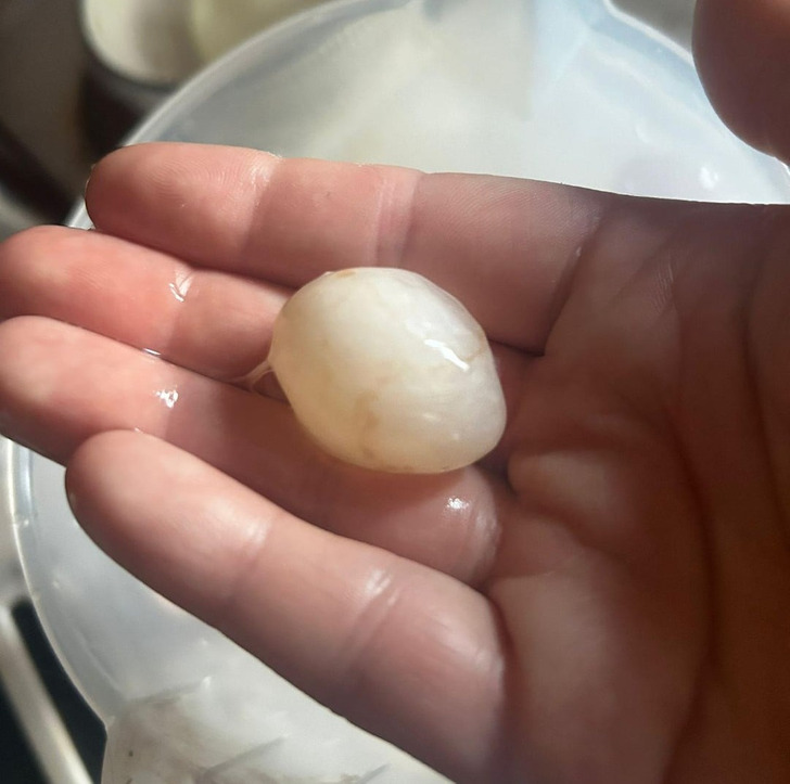 - Такое редко, но бывает: организм курицы дает сбой и принимает случайно оторвавшийся кусочек ткани за желток, оборачивая его белком и скорлупой. В итоге внутри оказывается вот такая странная масса. © AccurateSimple9999 / Reddit