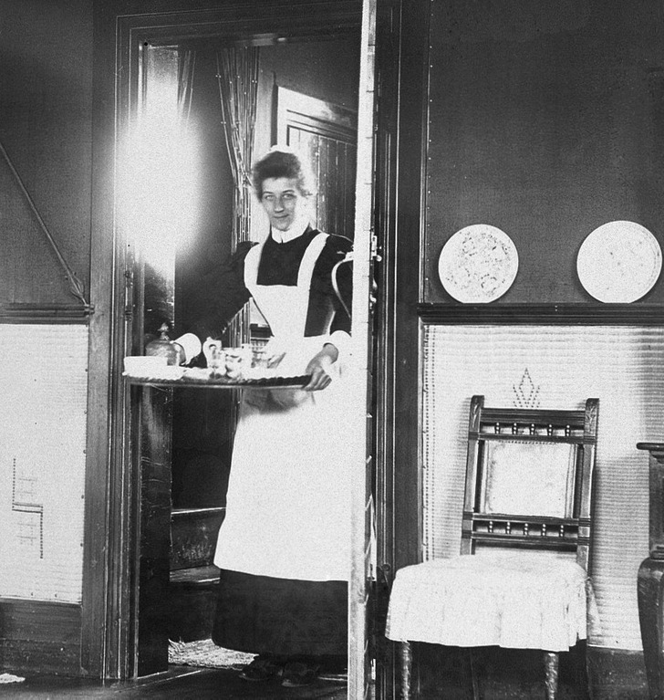 Обычно девушки поступали на службу в дом в юном возрасте, потому что эта работа требовала от них неиссякаемой энергии и завидной выносливости. Трудовой день начинался в 6 утра и заканчивался ближе к полуночи, причем перерывы были редким делом. К концу XIX века знатная дама могла менять наряды по шесть раз в день, и перед этим ей требовалось освежиться. Если водопровода в доме не было, служанке нужно было принести в господскую комнату свежий кувшин подогретой воды из кухни. И это была всего одна из множества обязанностей.
