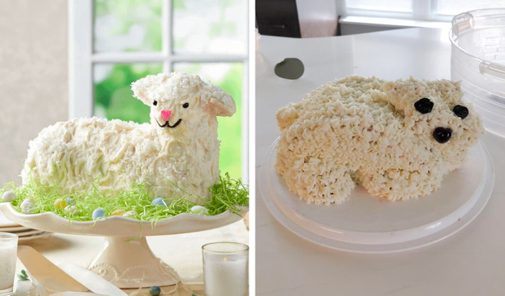 Девушка попробовала сделать традиционный торт в виде ягненка, но у нее не было формы. Пришлось импровизировать, и вот что в итоге вышло. Впрочем, это ничуть не смутило других пользователей, которые высоко оценили ее работу и по-доброму посмеялись. Одна дама даже воскликнула: «Это же точь-в-точь моя собака!» — и прикрепила фото своего питомца, чтобы подчеркнуть сходство.