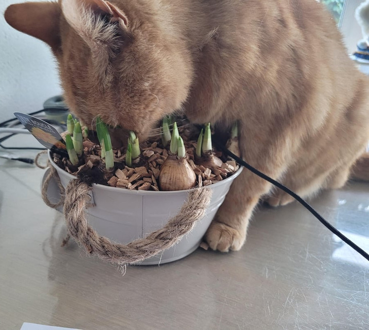 Хозяин рыжего любителя живой природы сразу же сказал, что с котиком все в порядке. Он живет в регионе, где выращивают луковичные цветы, и ему сейчас 16 лет.