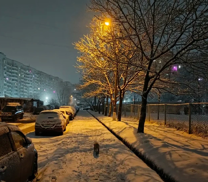 Не везде в апреле цветет сирень и порхают первые бабочки. В некоторых городах, как например, на этом фото, все еще может пойти снег. Но автору снимка это даже понравилось. Он написал: «Пускай это может показаться наивным, но в такие вечера ты идешь вечером и думаешь, что вдруг сейчас встретишь кого-то из сказки».