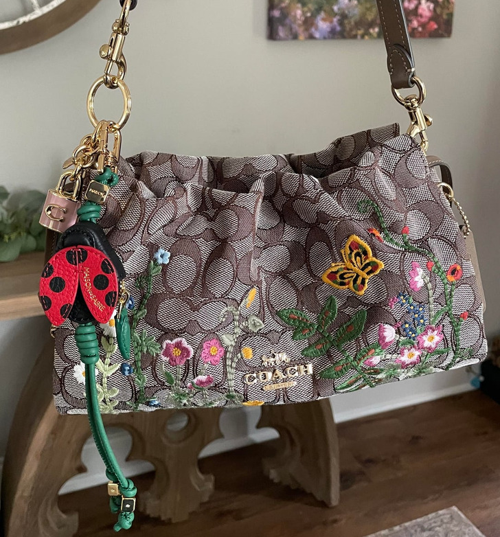 Пользовательница выложила фото своей новой весенней сумки и тут же получила комментарий: «Брелок в виде божьей коровки — очаровательное дополнение к ней». Девушка ответила, что уже давно присматривалась к этому брелоку и купила сумку в основном из-за него.