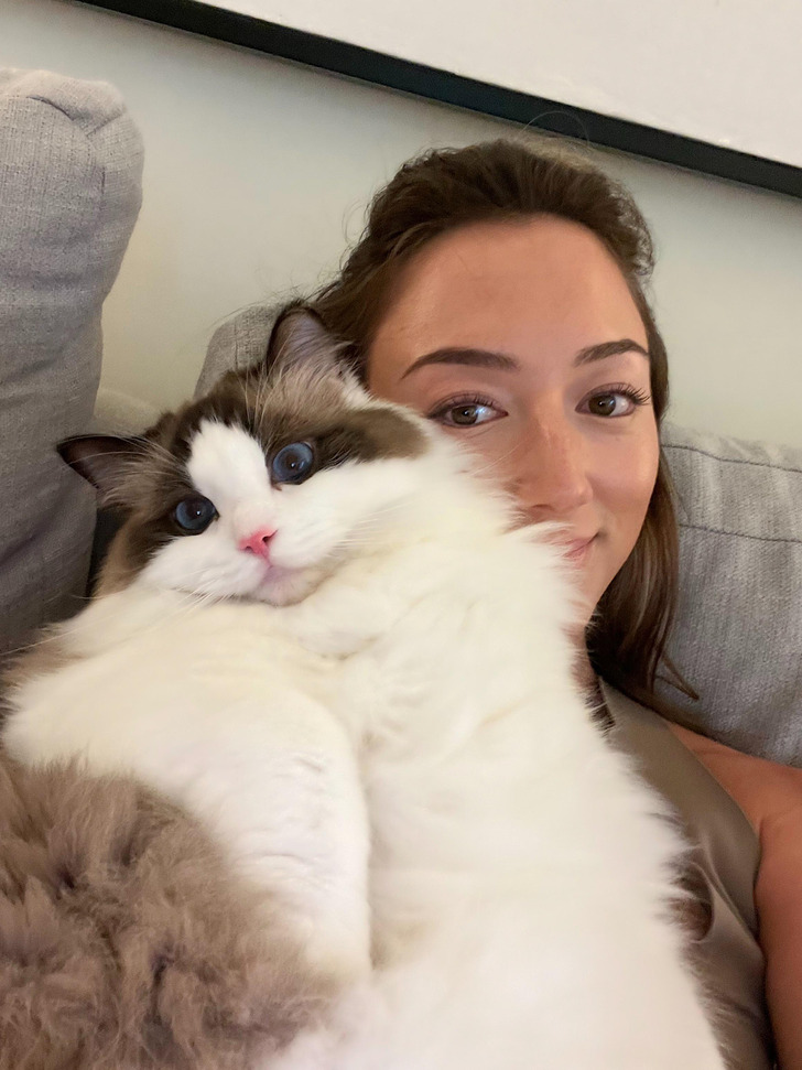 «Я год назад взяла свою первую кошку породы рэгдолл и совершенно без ума от нее. Моя красавица уже выросла из всех лежанок, что я для нее покупала»