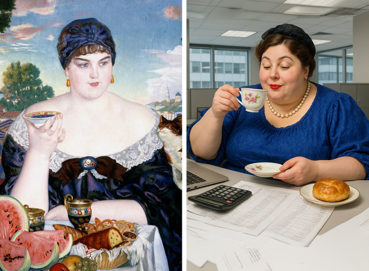 Долой музейную пыль и золотые рамы! Представим персонажей с известных картин в обычной жизни? Будто бы они живут здесь и сейчас и работают вместе с вами в офисе. Нейросеть постаралась на славу, чтобы вписать легендарных персонажей в реалии нашего времени. Смотрите и убедитесь: мир искусства никогда не будет прежним!