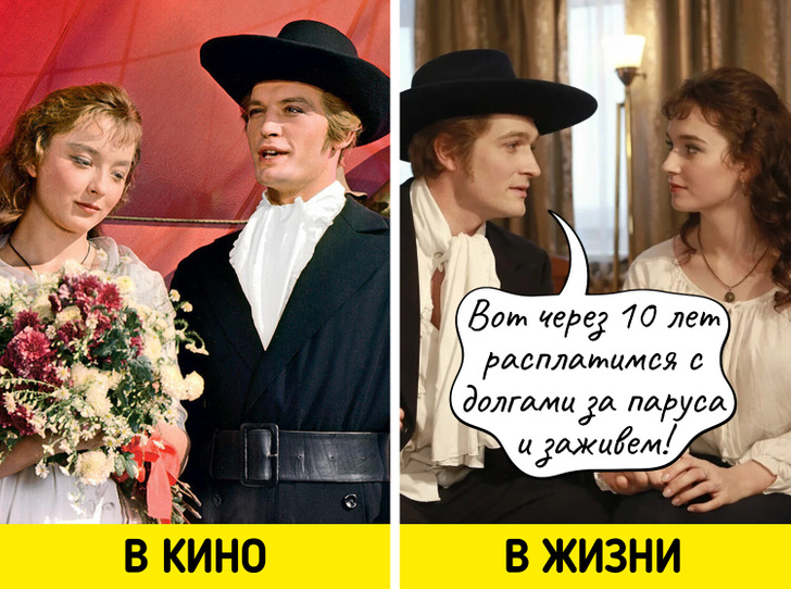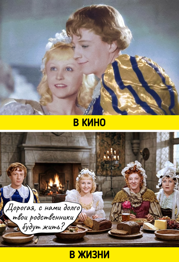 В романтических фильмах нам редко показывают, как герои после свадьбы начинают жить под одной крышей. И это, наверное, к лучшему. Ведь если бы мы увидели, как Ассоль годами обитает на корабле, обстирывая и обшивая весь экипаж, Золушка забирает мачеху и сестру во дворец, а Красотка пытается поступить в колледж к неудовольствию мужа, — это уже были бы настоящие драмы. Мы представили, какие бытовые реалии ждали бы героев наших любимых мелодрам.