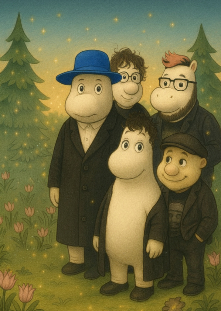 А что если взглянуть на мир музыки глазами нейросети? Мы выдали ей названия известных групп и предложили изобразить их буквально. Результат оказался одновременно забавным и очень креативным: некоторые изображения выглядят как шутка, а другие вполне могли бы стать постерами к музыкальным альбомам.