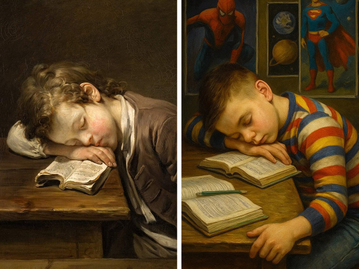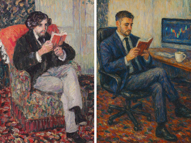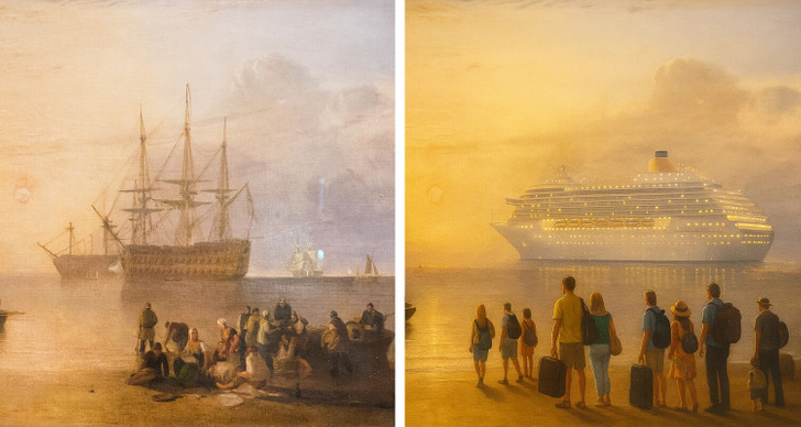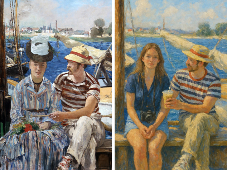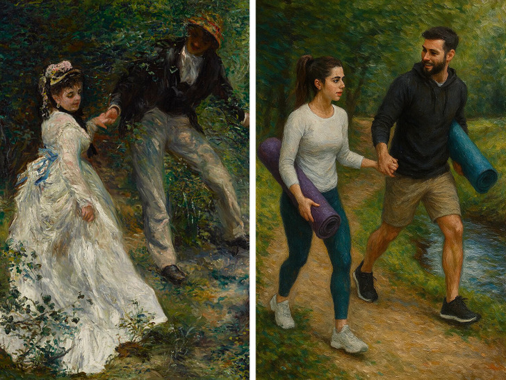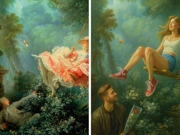 Мы все любим классику, но иногда невольно задумываемся: а что, если бы Тернер писал не парусные судна, а круизные лайнеры? С помощью искусственного интеллекта мы перенесли самые узнаваемые картины в наши дни. «Шоколадница» разносит бургеры клиентам кафе, «Балерина» Дега танцует хип-хоп, а знаменитые «Качели» Фрагонара превратились в не самое удачное свидание. Перед вами — 15+ доказательств того, что гении творят вне времени, а сюжеты для великих картин находятся прямо у нас под носом. Сравните сами: насколько актуальными стали бы полотна Лиотара, Дега и Климта, если бы они увидели мир 2025 года.