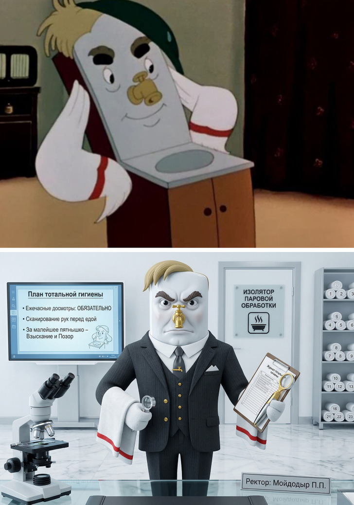 Здесь царит чистая, кристальная дисциплина. Очевидно же, что этот строгий начальник — настоящий педант, для которого малейшее пятнышко на воротничке — это уже преступление вселенского масштаба. Признавайтесь, вы ведь тоже в детстве чувствовали легкий трепет перед этим блюстителем чистоты?
