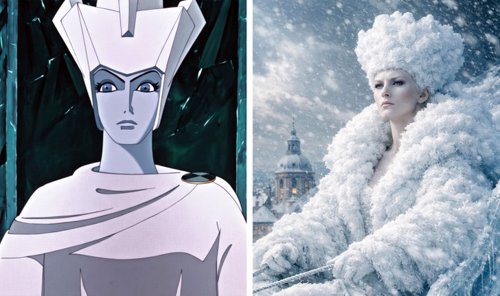 Образ холодной королевы в ледяном венце из мультика 1957-го года мы отлично помним. Но в оригинальной сказке Андерсена Снежная королева описана как высокая, стройная, ослепительно-белая женщина в шубе и шапке из снега, которая летает по ночным городским улицам, окруженная густым роем снежинок и заглядывает в окошки, которые покрываются ледяными узорами, словно цветами.