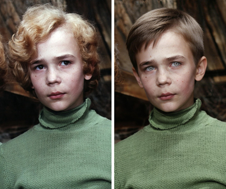 В трехсерийном фильме «Приключения Электроника» 1979 года Сыроежкина и Электроника, похожих как две капли воды, сыграли Володя и Юра Торсуевы. Их кинообразы с осветленными длинными кудрями обычными для того времени не назовешь. А вот в книге Евгения Велтистова «Электроник — мальчик из чемодана» внешность мальчиков была описана как самая обыкновенная — круглые курносые носы, серые глаза, взъерошенные волосы: «сотни, тысячи таких мальчишек бегают по улицам большого города».