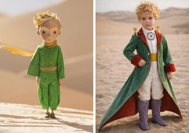 В книге «Маленький принц» Антуан де Сент-Экзюпери описал главного героя как необыкновенного малыша с тоненьким голоском, пришельца с другой планеты, явившегося посреди пустыни, а то, как выглядел принц, мы можем понять по собственным рисункам писателя, которые он включил в текст.