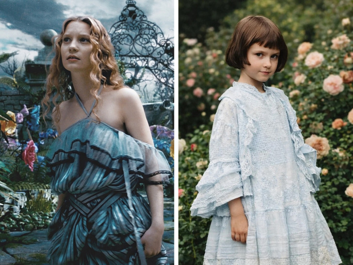 В отличие от девушки со светлыми волосами, которую в кино воплотила Миа Васиковска в фильме Тима Бертона «Алиса в Стране чудес», книжной Алисе 7 лет, а как она выглядит, мы можем судить по фотографии, которую Льюис Кэрролл прикрепил к своей рукописи. На снимке изображена реальная девочка — Алиса Плезенс Лиделл, юная знакомая писателя, с которой он был очень дружен. По ее просьбе и была записана сказка, сочиненная когда-то во время совместной лодочной прогулки. Так что Алиса вовсе не была блондинкой — у нее были темные стриженые волосы и умный взгляд.