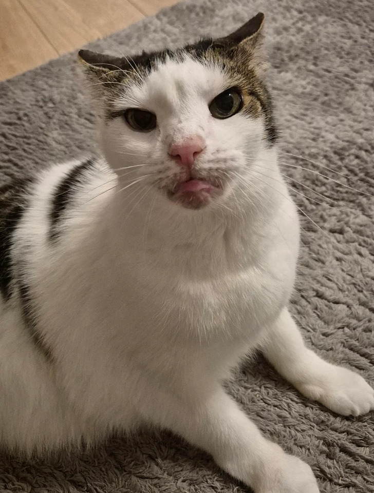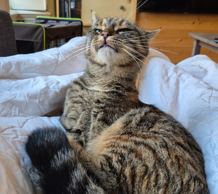«Иногда прямо посреди умывания кошка „зависает“ и смотрит в пустоту с самым нелепым выражением морды. Обожаю эту странную девочку!»