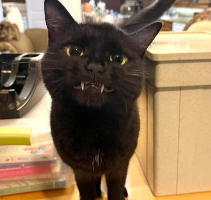 Жаль, не могу прицепить фото, где мой черный Бабс со сдвоенными клыками скалится. Поймала момент, когда молочные еще не выпали, а коренные уже выросли. Жуть такая! ))))