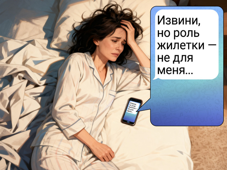 Свидание прошло прекрасно. Он был милым, душевным, шутил и держал меня за руку на прогулке. А я шла рядом и представляла, что это — муж, а развод был просто дурным сном. Не знаю, как так вышло, но я начала рассказывать ему про свой развалившийся брак. Он слушал, кивал, сочувствовал... а наутро написал: «Извини, но роль жилетки — не для меня». Это был провал.