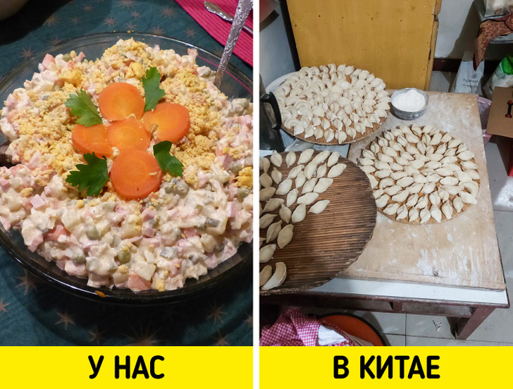 По приезду мы сразу же окунулись в суету. Мужчины снимали прошлогодние украшения и развешивали новые, подметали дом, проветривали одеяла. А женщины были заняты приготовлением традиционной еды на Новый год. Мы привыкли к огромному столу, изобилию блюд, салатов, нарезок. В Китае блюдо только одно — домашние пельмени, которых заготавливают сотнями. Ведь именно этим будут питаться десятки родственников несколько дней подряд.