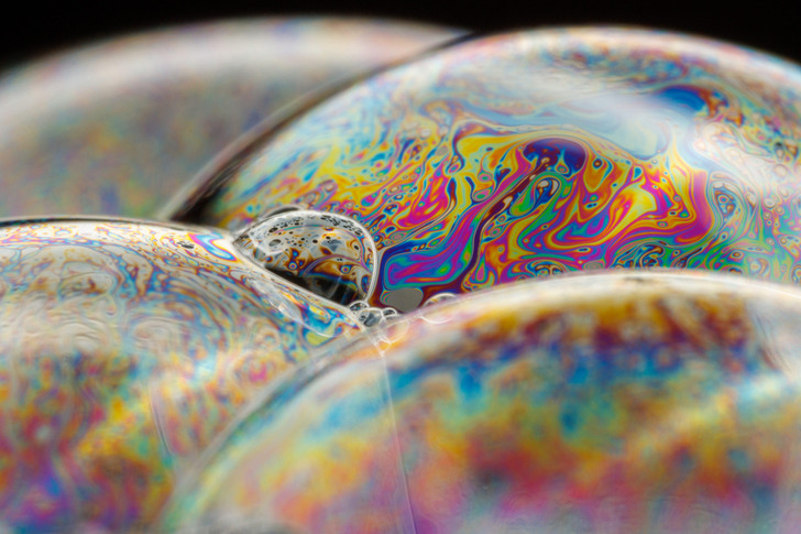 Поверхность мыльных пузырей. Аж в парк захотелось, чтобы надувать пузыри, а такая красота повсюду летала