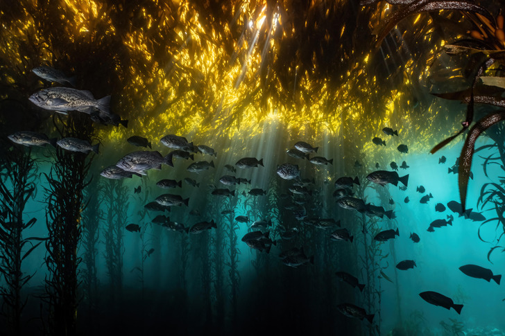 «Стая морских окуней в заливе Монтерей, Калифорния»