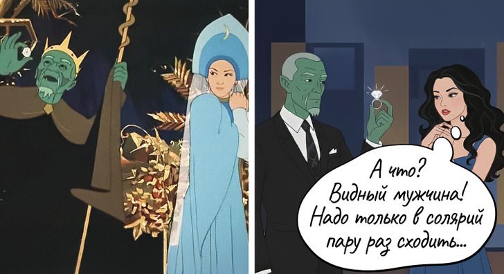 В реальности Василиса вряд ли сразу бы отказала Кощею. Подумаешь, в возрасте и цвет лица немного странный. А злой он может быть потому, что все его отвергают