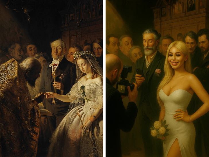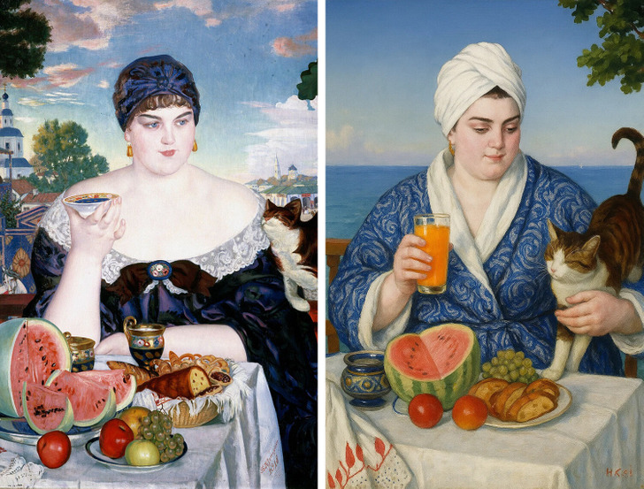 Представьте себе Кустодиевскую купчиху на курорте или нынешний неравный брак, когда юная невеста совсем не против выйти замуж за состоятельного мужчину постарше. Мы решили заглянуть в прошлое и немного пошалить — «осовременить» знаменитых героев картин. И, честно говоря, теперь они выглядят так, будто вот-вот выложат новый пост в соцсетях.