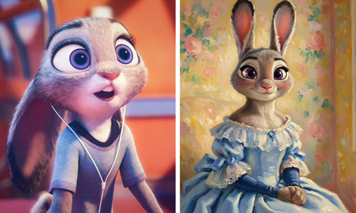 Посмотрите, какой нежной и романтичной получилась Джуди Хоппс из «Зверополиса». Мы попросили нейросеть создать ее в стиле портрета Жанны Самари кисти Ренуара