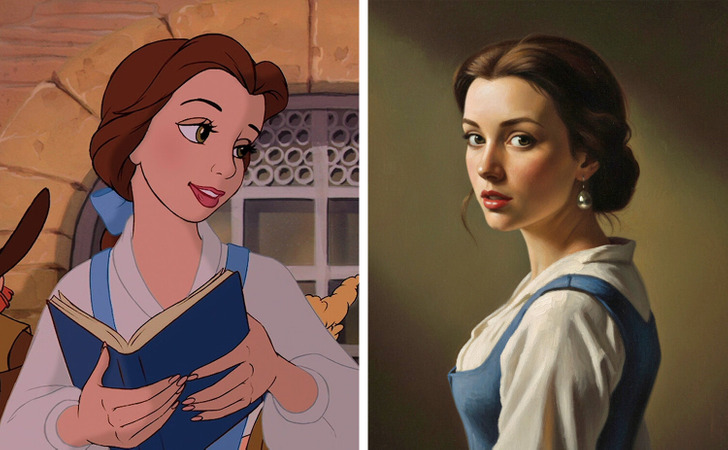 А это Белль из «Красавицы и Чудовища» в стиле «Девушки с жемчужной серёжкой» Яна Вермеера