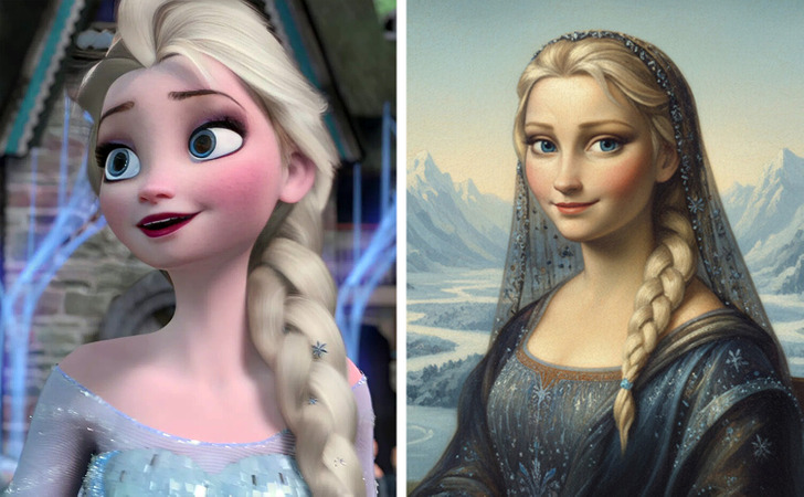 А это Эльза из «Холодного сердца», нарисованная в стиле Моны Лизы Леонардо да Винчи