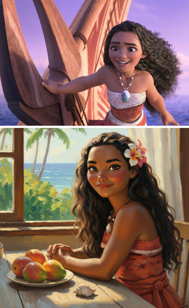 Моана из одноименного мультфильма в стиле «Девочки с персиками» Валентина Серова. Правда, с поправкой на местный колорит