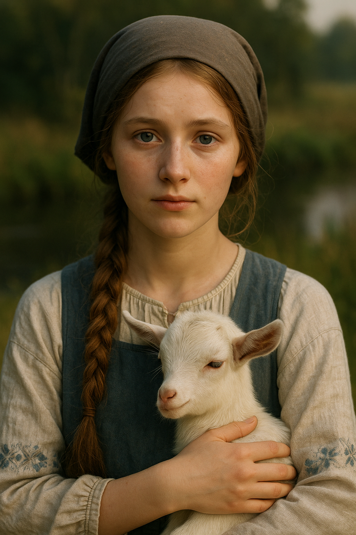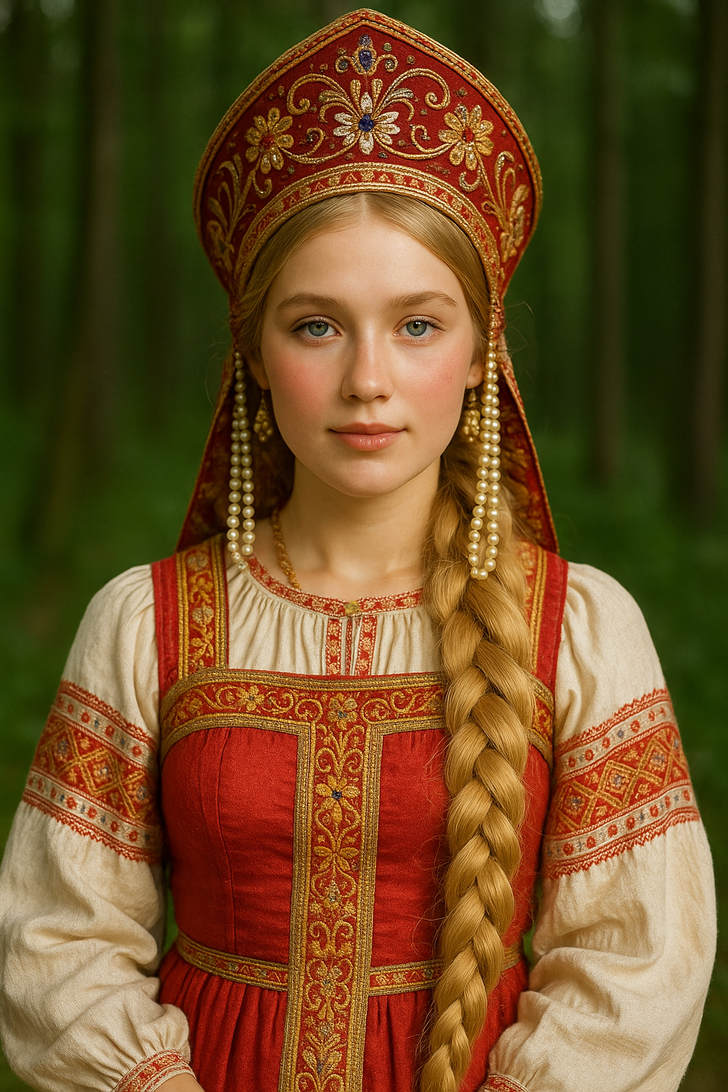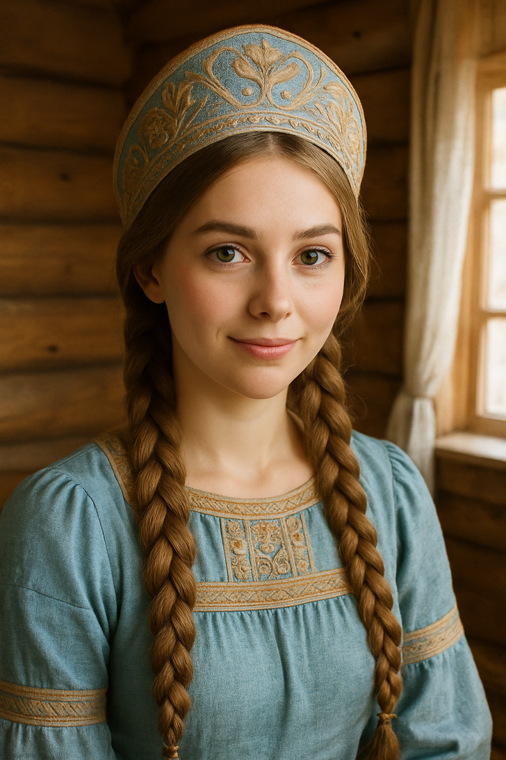 Ой, какая милашка! Настоящая русская девица-красавица и коса до пояса. Удивительно, но здесь ИИ смог передать осмысленный, мудрый и спокойный взгляд девушки, полный достоинства и простоты.