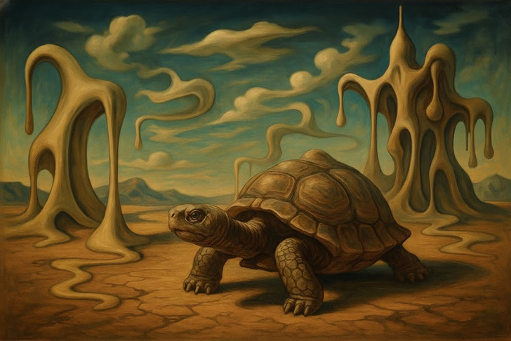Долог черепаший путь сквозь плавящуюся пустыню Дали, но этот питомец всегда отличался упорством и терпением
