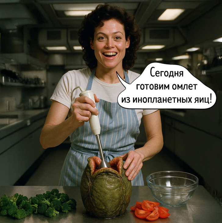 А вот Эллен Рипли у нас не только космический разведчик, но, оказывается, еще и неплохой повар. Здесь космическое кулинарное шоу