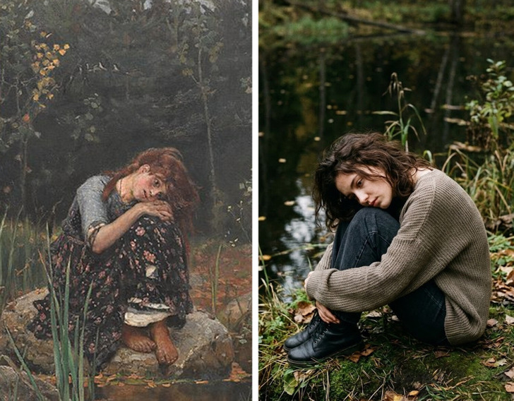 Очень напомнило, как народ косплеил картины, развлекаясь во время самоизоляции в пандемию коронавируса 2020 года)