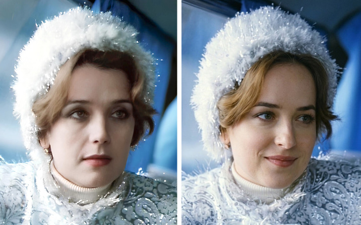 Новогоднее настроение чаще всего не появляется по щелчку. За будничными хлопотами можно так замотаться, что не заметишь, как пролетело время, и уже через пару дней нужно резать салаты. Но стоит включить любимый новогодний фильм, увидеть культовых героев — и настроение постепенно начинает обрисовываться. В этой статье мы решили немного похулиганить и представить, как бы выглядели голливудские звезды, если бы снялись в наших культовых картинах. Например, Дакота Джонсон в роли Нади из «Иронии судьбы» или Дженна Ортега, примерившая на себя образ Марфушки из «Морозко».