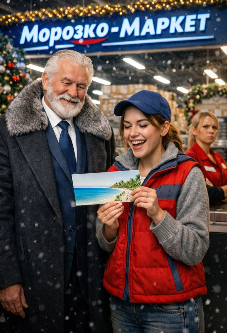 Морозко больше не сказочный дух, а успешный владелец сети продуктовых «Морозко-Маркет». Его принципы управления прозрачны как лед, и суровы как стужа. Трудолюбие он вознаграждает щедро. Скромная и работящая кладовщица Настя получает неожиданную премию — путевку на море. А вот ленивой и высокомерной кассирше Марфе он выносит вердикт: смена 31 декабря.
