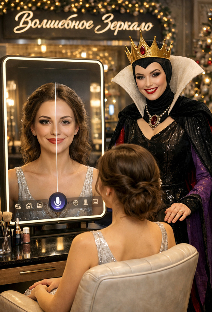 Декабрь для Королевы — самый горячий месяц. Запись на предновогодние дни в салон «Волшебное зеркало» заполняется еще в сентябре. Умное зеркало с голосовым помощником — ее главный ассистент. Делая последние штрихи в макияже клиентки, она хитро спрашивает: «Ну что, зеркальце, скажи, кто тут всех обаятельней и милей?» А зеркало с готовностью выдает: «Ты, моя королева, несомненно, прекрасна. Но твоя клиентка сегодня краше всех!»