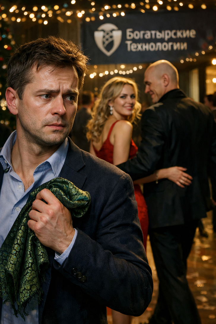 На новогоднем корпоративе разыгралась драма. Иван, менеджер среднего звена, только собрался пригласить Василису из отдела дизайна на танец, как увидел душераздирающую картину. Кощей, зам. директора по финансам в своем вечном черном костюме, уже уводил ее к выходу, ловко обходя танцпол. Василиса, смеясь, шла с ним, забыв свой шелковый шарфик с замысловатым узором, похожим на лягушачью кожу. Уходя, Василиса оглянулась и что-то неслышно прошептала. Возможно, это было пожелание в следующий раз быть смелее?