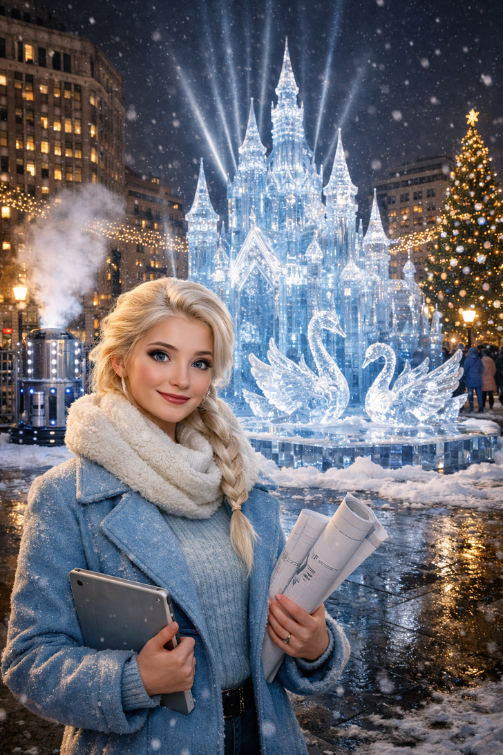 Эльзу не зря пригласили на роль креативного директора по зимнему декору. Она терпеть не может пластик и однообразие. Вместо штампованных фигур ее команда устанавливает на площадях специальные генераторы, которые по ночам, используя влагу из воздуха, выращивают ажурные ледяные скульптуры. Каждое утро горожане обнаруживают новый шедевр: то стаю кристальных лебедей, то замок с переливающимися гранями. Ее искусство временно. Оно растает весной, что и делает его таким драгоценным — как и сам миг Нового года.
