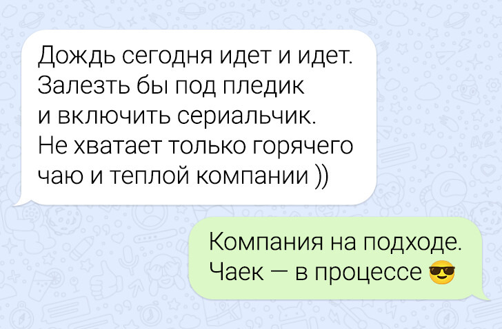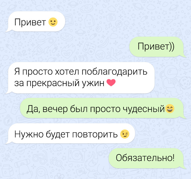 И верно, ведь все эти вещи — это про внимание, которое вы оказываете друг другу. Это про то, чтобы видеть в другом человека, который все еще интересен, несмотря на тысячи совместных завтраков и ссоры из-за того, кому сегодня идти в магазин за хлебом.