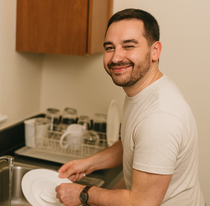 Также мы не забывали и про благодарность. Я ловила моменты, когда он мыл посуду, и говорила: «Какой ответственный мужчина. Прям нужно брать!» И главное, что эти крошечные фразы работали!
