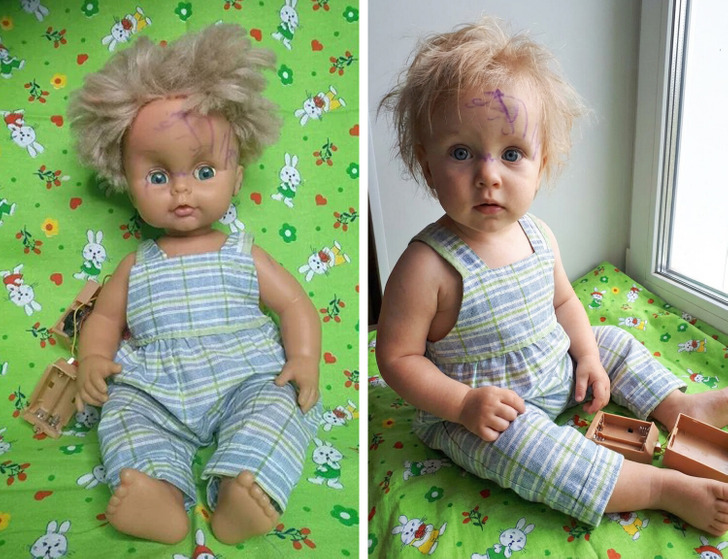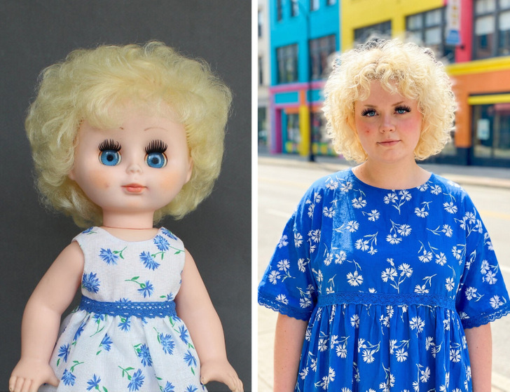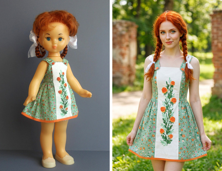 Похоже, но только зачем девушку в какой-то балахон нарядили? У куколки симпатичное платьице.