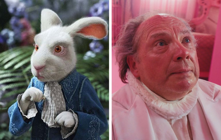 Кролик у Тима Бертона тоже был в сговоре против Красной королевы и одновременно состоял у нее при дворе. Именно он привел Алису в свою страну, познакомил с остальными героями и показал, где лежит Вострый меч. Кролик в исполнении Андрея Федорцова служит Герцогине и помогает ей в ее злодействах. На Алису он наталкивается совершенно случайно, и очень недоволен ее появлением в своем мире.